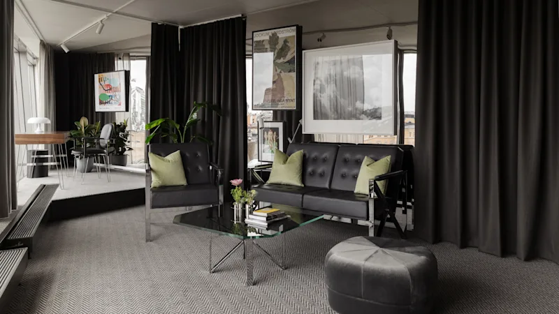 Osana lanseerausta muotoilijaduo on luonut sviitteihin myös täydellisen sisustuskonseptin. Jokainen yksityiskohta on saanut inspiraationsa ikkunoiden takana avautuvasta kaupungista ja rakennuksen arkkitehtuurista.