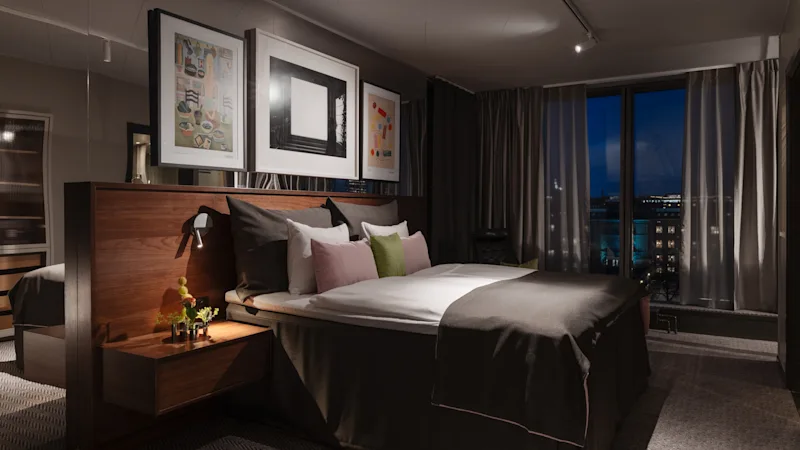 Kaupungin syke kohtaa sviitin rauhallisuuden. Muotoilu ja taide luovat uuden ilmeen Clarion Hotel® Signille – ja koko Tukholmalle. Materiaalipaletti on kuratoitu huolella: